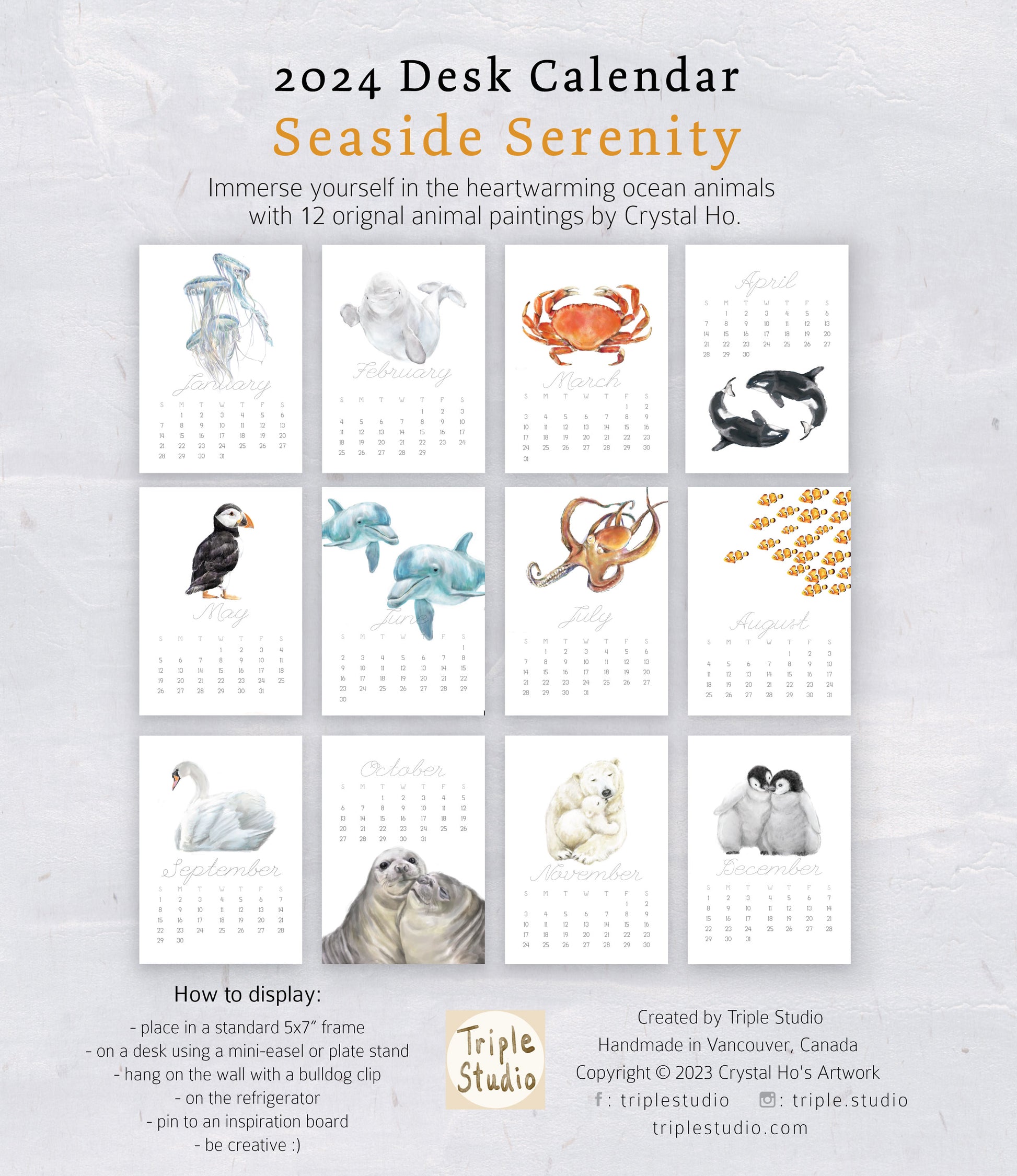 As you flip through the months, you'll be transported to the serene depths of our world's oceans. I hope that the beauty of majestic sea creatures can be a testament to the profound peace that can be found beneath the waves.