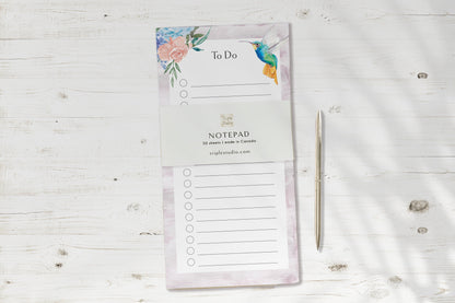 Introducing our notepad featuring our popular hummingbird watercolor painting. Each notepad is a true work of art, with delicate brushstrokes and vibrant colors that bring these beautiful birds to life. The small bird notepads are perfect for nature lovers, bird watchers, or anyone who appreciates the beauty of the natural world. Keep one on your desk for work or school, or take it with you on your outdoor adventures to capture your observations and inspirations.
